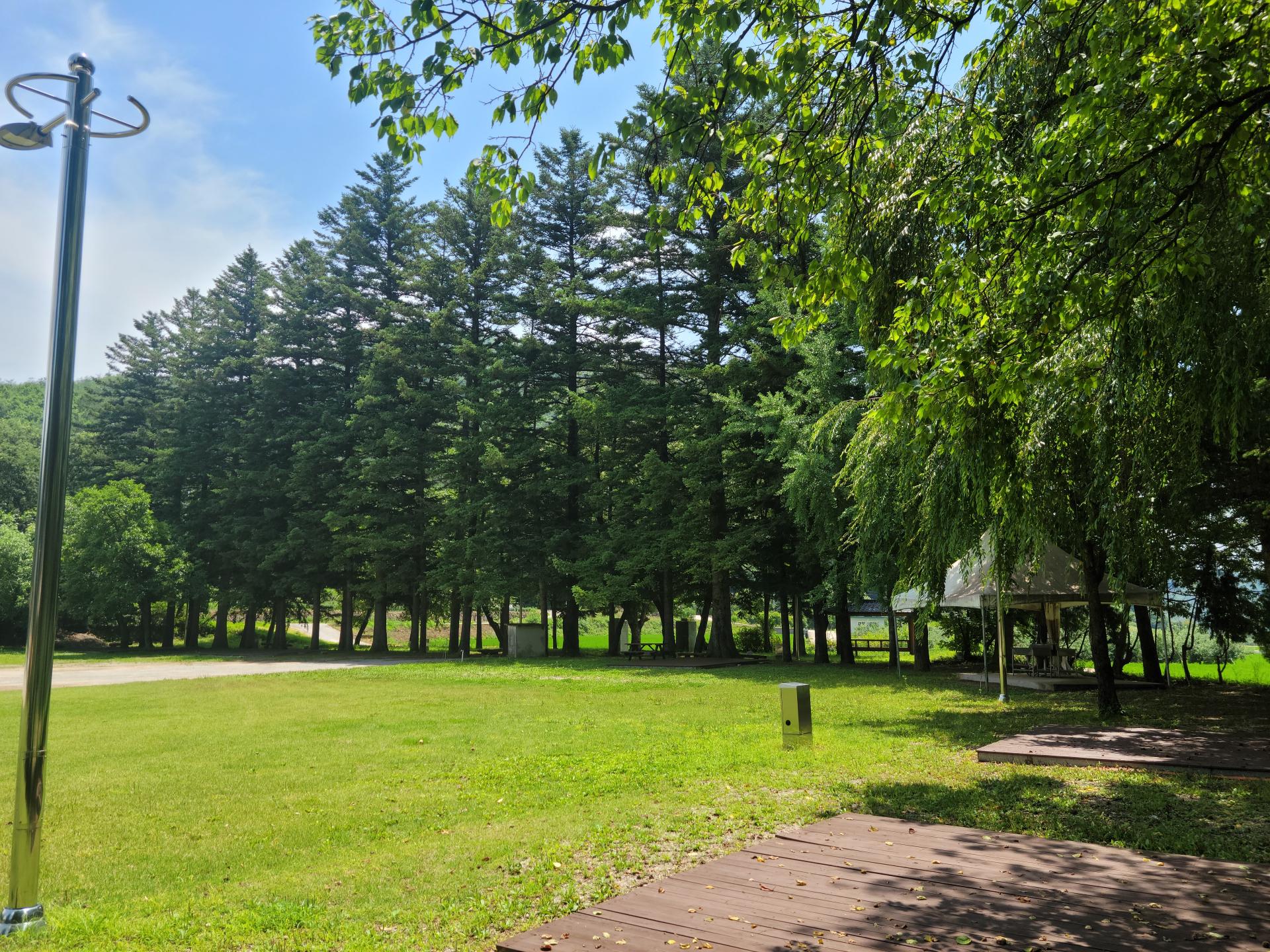 운동장 옆 데크형 캠핑존은 전기와 수돗물이 설치되어 있고,