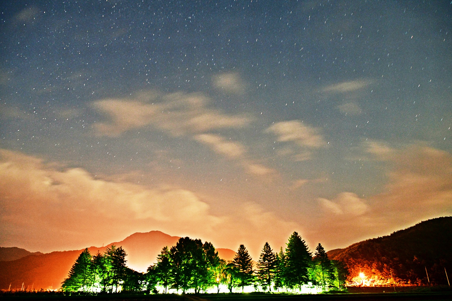 "야간 별무리 사진"